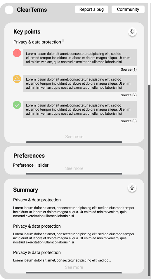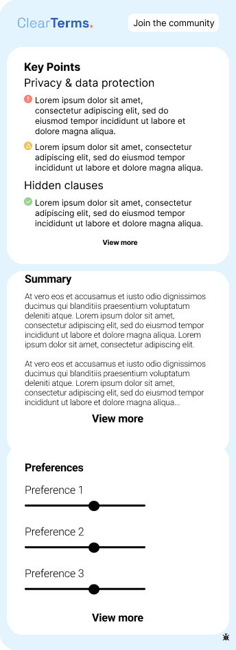 We ran interviews and surveys to see how people deal with terms and conditions. The research kept showing the same thing. Frustration with how unclear and inaccessible everything is.