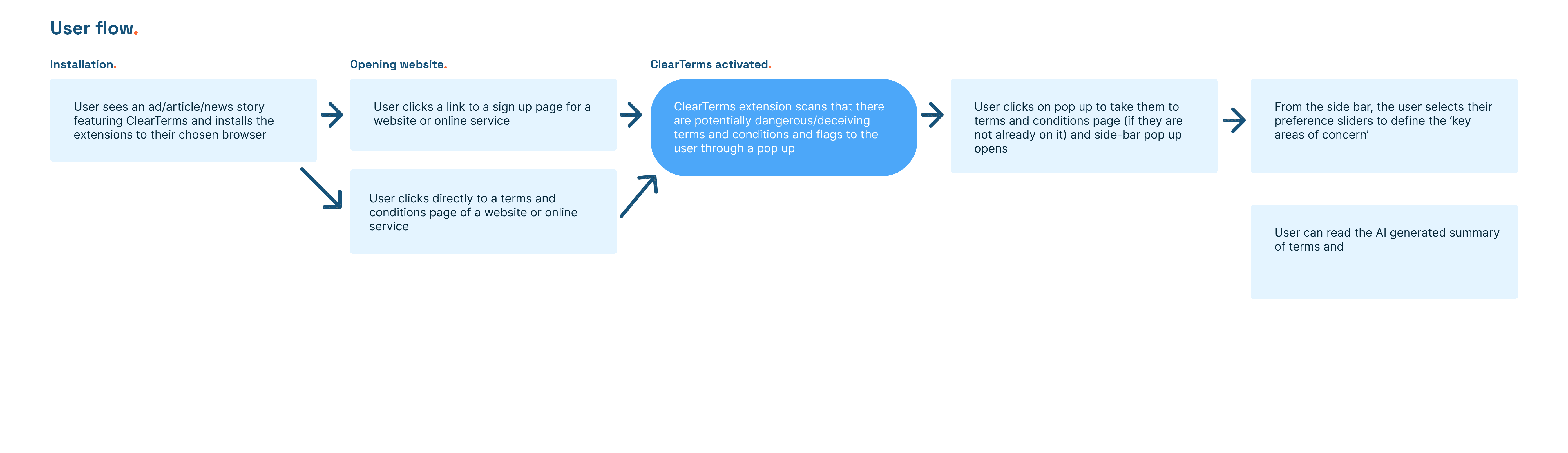 This project strengthened my ability to run user research under tight deadlines and iterate with a team. Connecting research insights to design choices and integrating team feedback were critical to delivering ClearTerms.